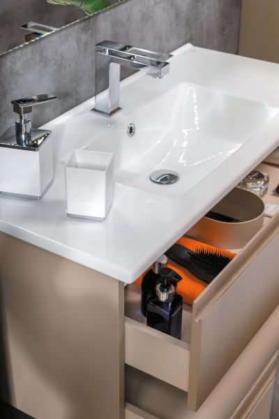 Тумба для комплекта Armadi Art Capolda 85 latte не только отличное украшение для ванной комнаты, но и восхитительное функциональное решение любого санузла. Подвесной способ установки дает возможность не только визуально увеличить пространство, но и обеспечивает быстрый и удобный доступ для уборки.Компания Armadi Art использует при производстве высококачественные водоотталкивающие материалы (ДСП), соответствующие всем необходимым требованиям безопасности. Серия Capolda отличается превосходным дизайном с соблюдением всех значительных элементов. Основным цветом, в котором выполнена тумба под раковину Armadi Art Capolda является бежевый, безупречно впишется в любой дизайн проект. Тумба под раковину предусматривает удобную и вместительную систему хранения, состоящую из ящиков. Ключевые габариты изделия: ширина 82 см, глубина 45 см, высота 48 см.Страной бренда Armadi Art является Италия, все товары производятся с выполнением соответствующих стандартов качества, что позволяет быть полностью уверенными в долговечности и надежности. Тумба для комплекта Armadi Art Capolda 85 latte поможет сделать уютным любой интерьер и создать идеальную ванную комнату.