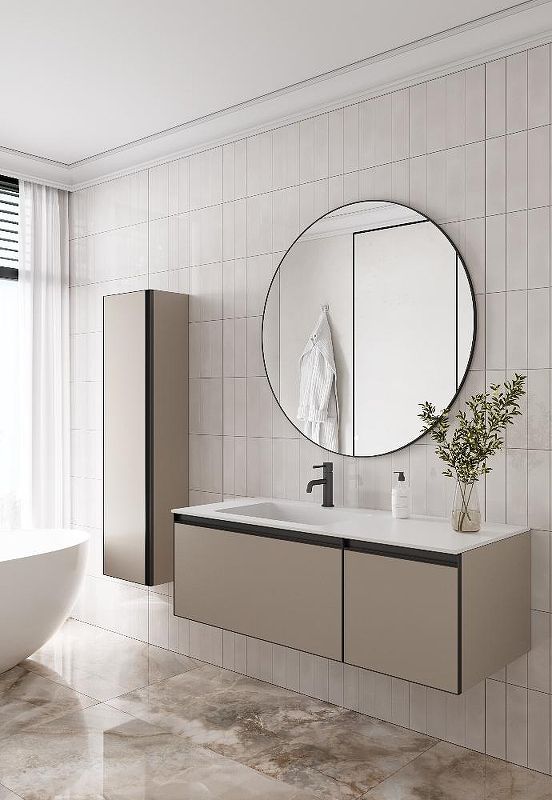 Главной особенностью коллекции являются обрамления фасадов из алюминия в самых трендовых цветах: графит, матовое золото, матовый черный и серебро. Эти обрамления идеально дополняют сантехнику в ванной комнате.