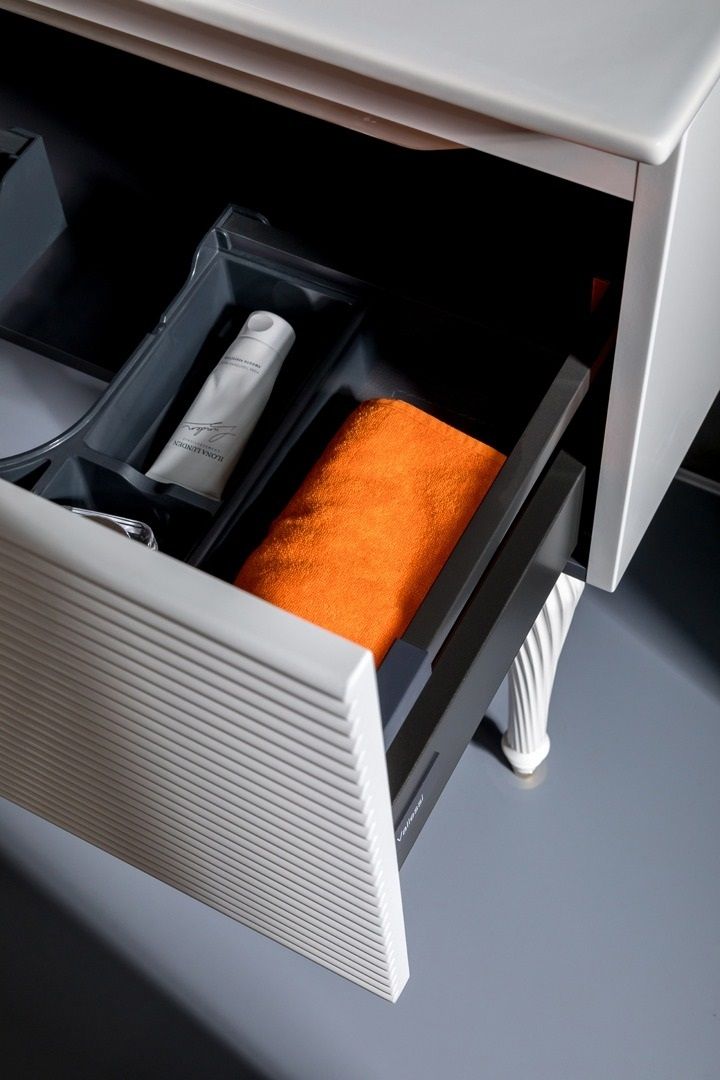 Тумба для комплекта Armadi Art Vallessi Avangarde восхитительно подойдет как для просторной ванной комнаты, так и для небольшого помещения. Подвесной способ установки дает возможность не только визуально увеличить пространство, но и обеспечивает быстрый и удобный доступ для уборки.В производстве используют только качественные влагостойкие материалы (МДФ), в составе которых полностью отсутствуют опасные вещества. Серия Vallessi Avangarde отличается превосходным дизайном с соблюдением всех важных элементов современного стиля. Основным цветом, в котором выполнена тумба под раковину Armadi Art Vallessi Avangarde является белый, гармонирующий с большинством интерьерных решений. Тумба под раковину предусматривает удобную и вместительную систему хранения, состоящую из ящиков. Качественные доводчики позволяют обеспечить мягкое и тихое закрывание. Ключевые габариты изделия: ширина 100 см, глубина 46 см, высота 53 см.Страной бренда Armadi Art является Италия, все товары производятся с выполнением соответствующих стандартов качества, что позволяет быть полностью уверенными в долговечности и надежности. Тумба для комплекта Armadi Art Vallessi Avangarde правильный выбор в современном дизайне ванной, придающий уникальность всему помещению, при этом сохраняя функциональность.