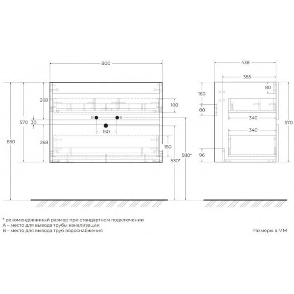 ELEGANT База под раковину подвесная с двумя выкатными ящиками, с LED подсветкой ручек. Белый глянец, 770x469x550 AM-ELEGANT-800-2C-SO-BL-LED-P