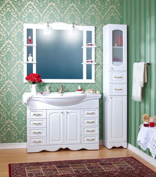 Удобная система хранения позволяет размещать все необходимое для гигиенических процедур, а её продуманные размеры отлично вписываются даже в небольшие помещения. Стильные ручки и элегантные фасады придают тумбе особый шарм, а разнообразие цветовых решений позволит выбрать модель, соответствующую любому интерьеру – от классического до модерн.