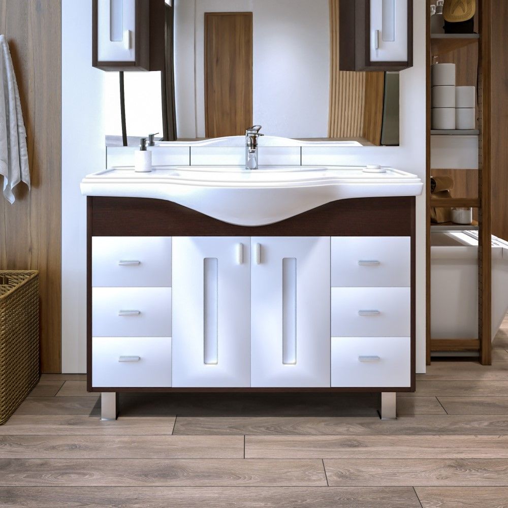 Тумба под раковину Бриклаер Бали 4627125411892 120 см венге/белый