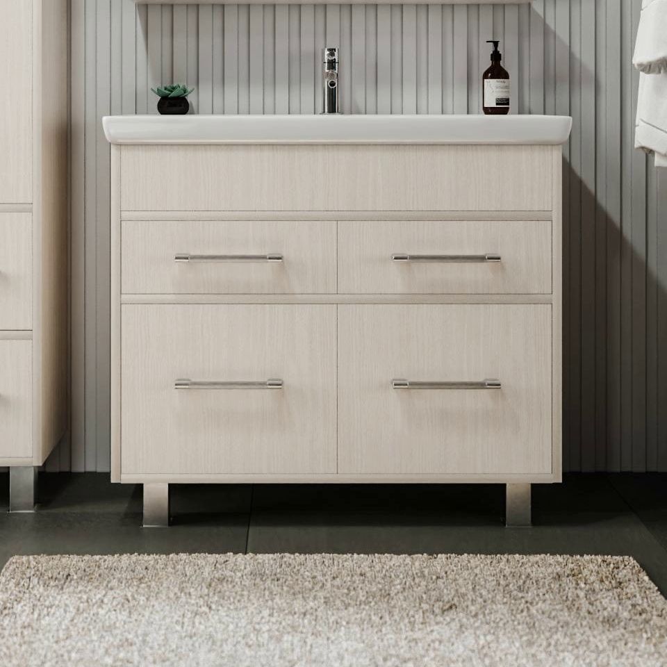 Удобная система хранения позволяет размещать все необходимое для гигиенических процедур, а её продуманные размеры отлично вписываются даже в небольшие помещения. Стильные ручки и элегантные фасады придают тумбе особый шарм, а разнообразие цветовых решений позволит выбрать модель, соответствующую любому интерьеру – от классического до модерн.