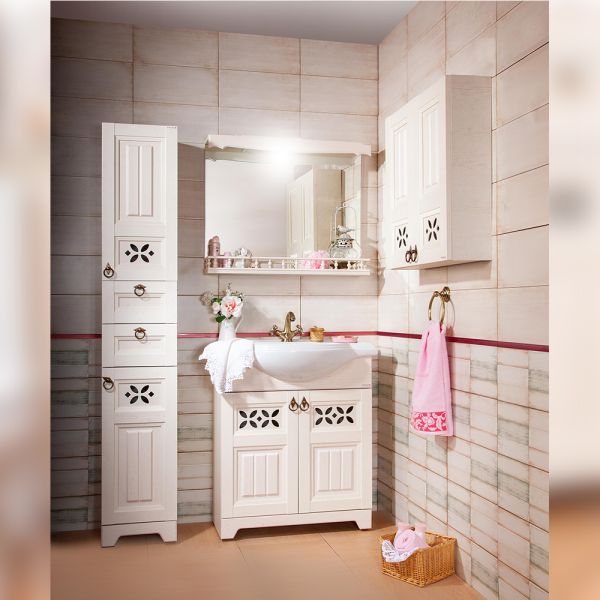 Удобная система хранения позволяет размещать все необходимое для гигиенических процедур, а её продуманные размеры отлично вписываются даже в небольшие помещения. Стильные ручки и элегантные фасады придают тумбе особый шарм, а разнообразие цветовых решений позволит выбрать модель, соответствующую любому интерьеру – от классического до модерн.