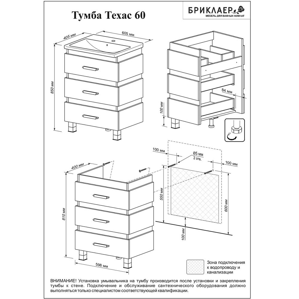 Тумба под раковину Бриклаер Техас 4627125412653 60 см кантри/венге