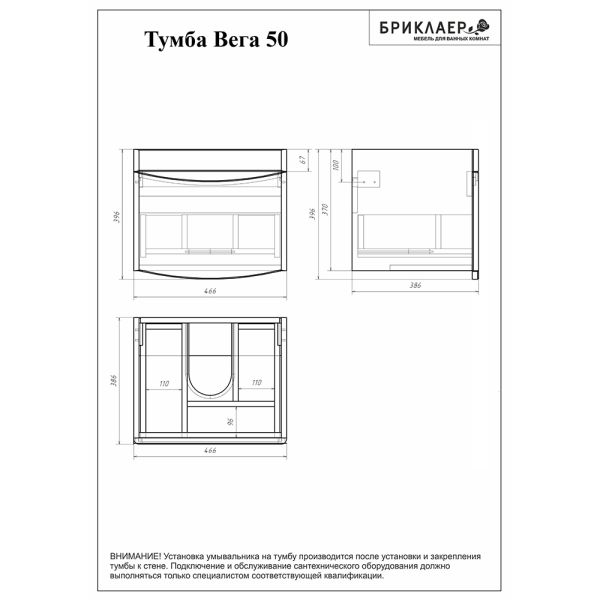 Тумба под раковину Бриклаер Вега 4627125414046 50 см белый