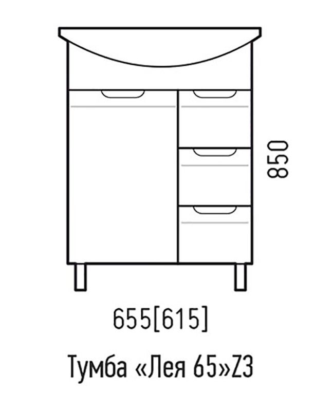 Тумба под раковину Corozo 65 Z3, 65 см, цвет белый, SD-00001509Коллекция мебели для ванных комнат "ЛЕЯ" создана для тех, кто ценит простоту форм, сочетание округлых и прямых линий, удобство эксплуатации. У мебели коллекции «ЛЕЯ» корпус выполнен из ЛДСП, фасады - из влагостойкой плиты МДФ, покрытие – пленка ПВХ. В верхней части стойки расположены полки, в нижней части - высокие боковины. Фурнитура с лицевой стороны фасадов отсутствует, вместо нее предусмотрены интегрированные ручки с декоративной полосой тонкой фрезеровки. Высота ящика по 110 мм. Тумба подходит под раковину Corozo Элеганс 65 см. Раковина приобретается отдельно.