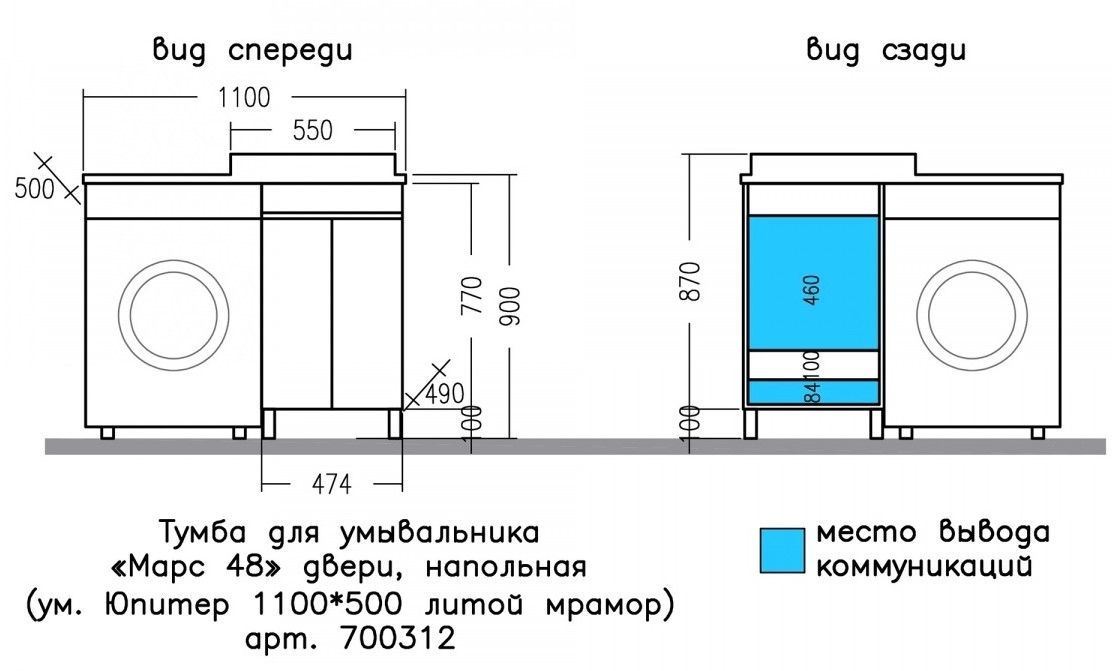 Тумба под раковину для стиральной машины СанТа Марс 700312 напольная 48см белый