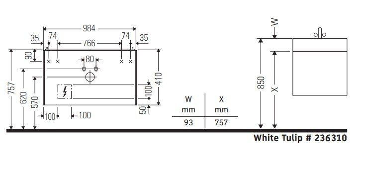 Тумба под раковину Duravit White Tulip 98.4 WT435208585 подвесная белая