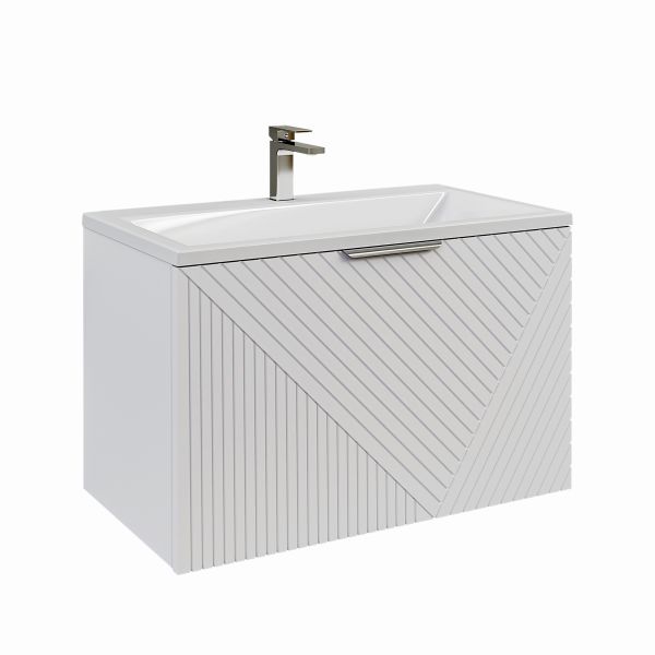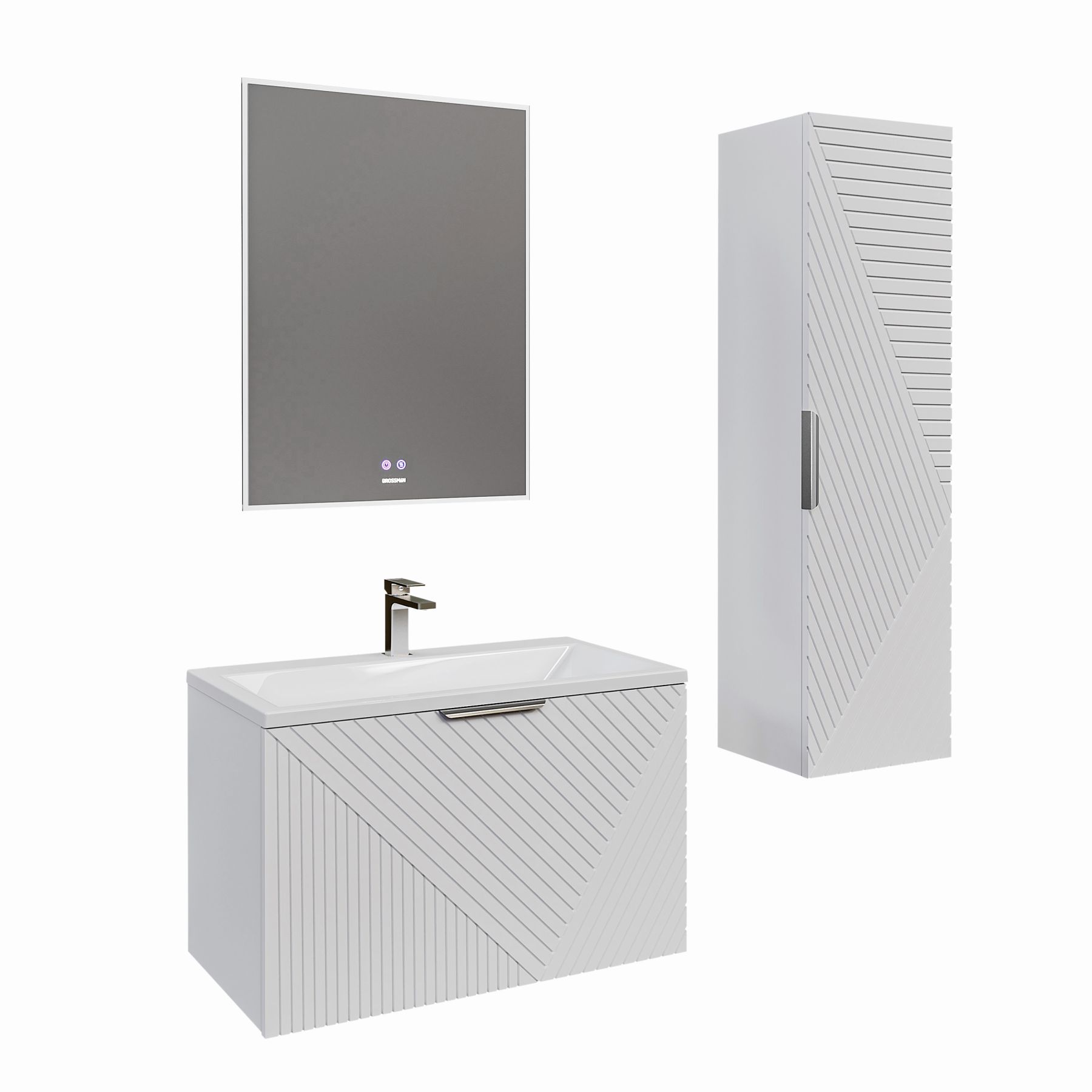 Изделие выполнено из влагостойкого МДФ с матовым лакокрасочным покрытием. Все поверхности устойчивы к воздействию влаги, что делает тумбу особенно надежной и долговечной при использовании в ванной комнате.Размеры: