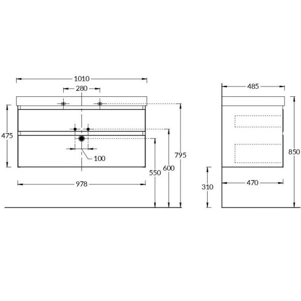 Тумба под раковину Kerama Marazzi Cubo CUB.100.2\LIM 100 см лимо матовый