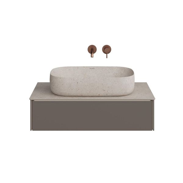 Подвесная тумба MAGICA в размере 90 см оснащена одним выдвижным ящиком. Тумба используется с керамической столешницей (приобретается отдельно) и одной из накладных или встраиваемых сверху раковин MAGICA. На выбор для создания уникальной ванной комнаты предлагаются три цвета фасадов и корпуса. В мебели MAGICA представлена двойная сенсорная подсветка: изящным контуром подчёркнут фаcад, дополнительное интерьерное освещение предусмотрено в нижней части.