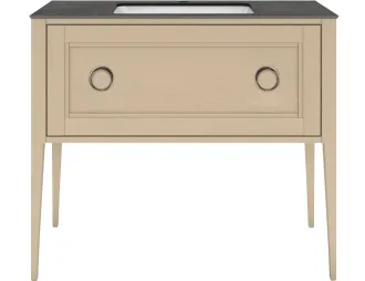 Напольная тумба с одним выдвижным и одним внутренним ящиками выполнена из массива ясеня с отделкой «открытая пора». Вместительный ящик с плавным закрыванием украшен двумя крупными ручками. Сочетается с керамическими столешницами PLAZA Classic шириной 100 см. Подходит для установки раковин с типом монтажа «накладная на столешницу» и «встраиваемая сверху».
