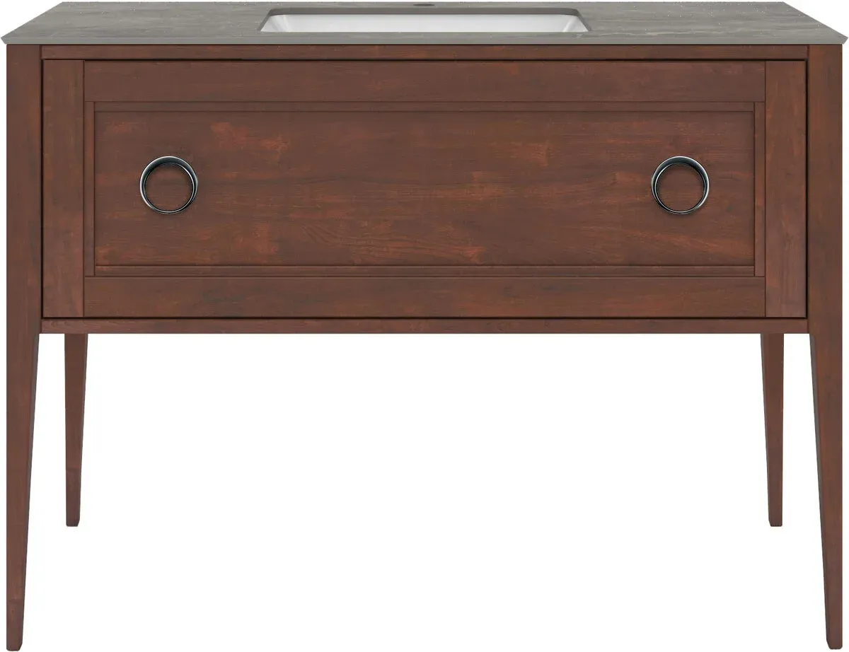 Напольная тумба с одним выдвижным ящиком выполнена из массива ольхи с отделкой «закрытая пора». Вместительный ящик с плавным закрыванием украшен двумя крупными ручками. Сочетается с керамическими столешницами PLAZA Classic шириной 120 см. Подходит для установки раковин с типом монтажа «встраиваемая снизу».