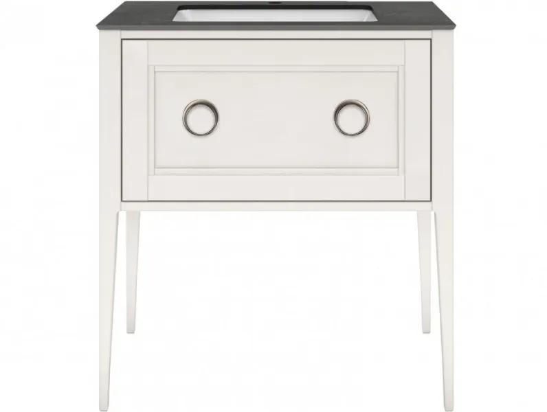 Напольная тумба с одним выдвижным ящиком выполнена из массива ясеня с отделкой «открытая пора». Вместительный ящик с плавным закрыванием украшен двумя крупными ручками. Сочетается с керамическими столешницами PLAZA Classic шириной 80 см. Подходит для установки раковин с типом монтажа «встраиваемая снизу».