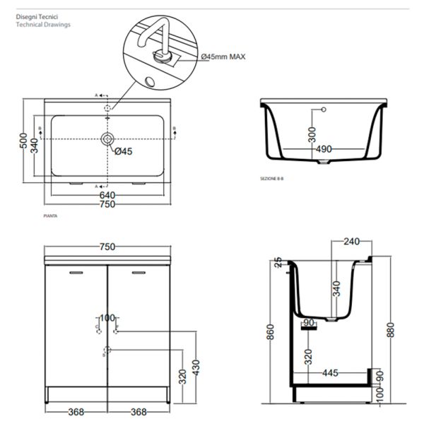Тумба под раковину Kerasan Aquadom 75 9164k3*0 напольная белаяKERASAN Aquadom Комплект для постирочной 75х50см: база + раковина 0293 БЕЗ ОТВЕРСТИЯ под смеситель+выпуск с сифоном , цвет белый матовый