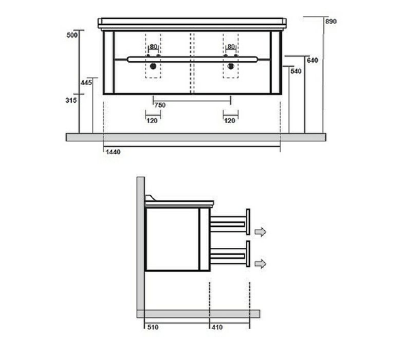 Габариты корпуса тумбы (ВхШхГ): 500х1440х510 мм.