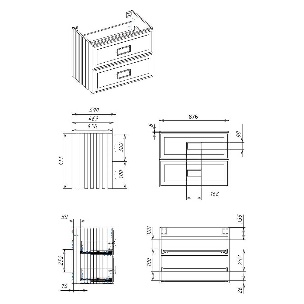 Тумба под раковину La Fenice Cubo TWIN FNC-01-CUB-G-90-2 87.6 см