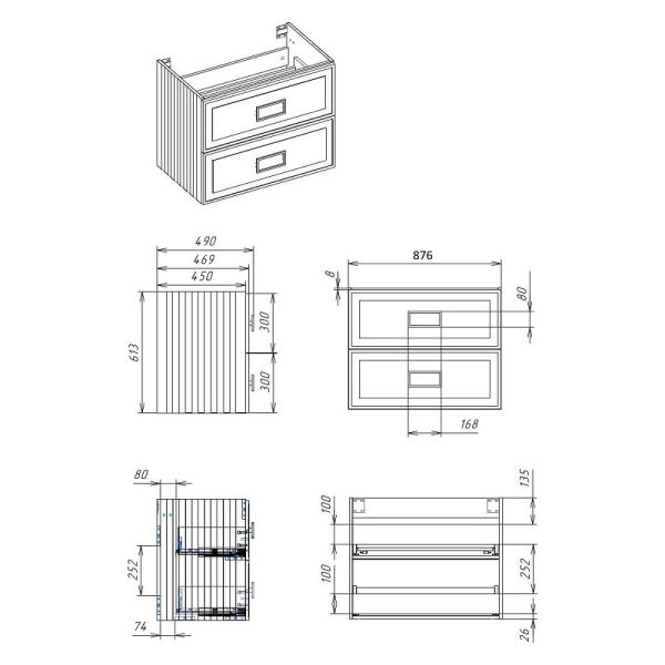 Тумба под раковину La Fenice Cubo TWIN FNC-01-CUB-G-90-2 87.6 смПодвесная тумба La Fenice Cubo TWIN FNC-01-CUB-G-90-2 обладает рядом неоспоримых преимуществ. Тумбу можно оснастить правосторонней или левосторонней встраиваемой раковиной (арт. CU.NN.90R или CU.NN.90L), либо же приобрести столешницу в подходящем цветовом решении (арт. FNC-03-PL01-90, FNC-03-VS03-90) и установить на неё раковину-чашу. К данной тумбе необходимо выбрать белые или черные ручки, которые включены в стоимость тумбы (FNC-04-CUB-B-80 - белые; FNC-04-CUB-N-80 - черные). За счет входящего в комплект сифона Prevex, тумба обладает полноценными ящиками для хранения (без выреза). Ящики выполнены в фантазийной цветовой гамме "Лён антрацит". Тумба оснащена скрытыми доводчиками плавного закрывания частичного выдвижения Samet (Турция) и подвесным регулируемым механизмом Camar (Италия). Фасад и корпус тумбы покрыты краской и матовым лаком, что является надёжной защитой от влаги. Прекрасным и функциональным дополнением к тумбе станет пенал La Fenice Cubo серо-зеленого цвета FNC-05-CUB-G-30