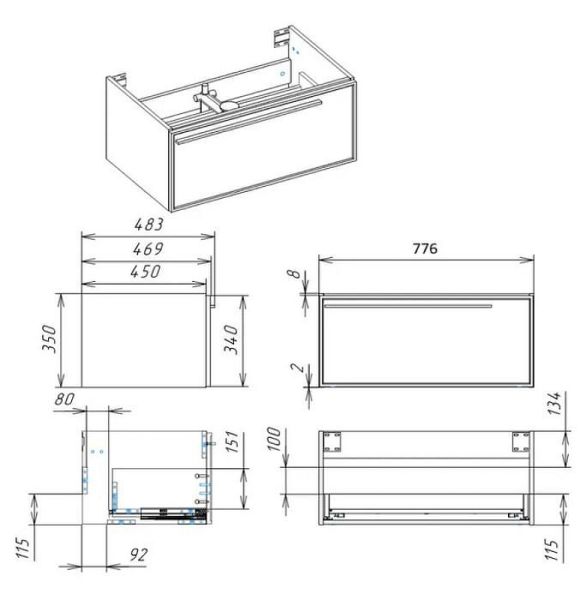 Габариты корпуса тумбы (ШхВхГ): 776х350х483 мм.