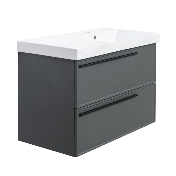 Тумба под раковину La Fenice Elba TWIN FNC-01-ELB-G-90-2 87.6 смПодвесная тумба La Fenice Elba TWIN FNC-01-ELB-G-90-2 обладает рядом неоспоримых преимуществ. Тумбу можно оснастить правосторонней или левосторонней встраиваемой раковиной (арт. CU.NN.90R или CU.NN.90L), либо же приобрести столешницу в подходящем цветовом решении (арт. FNC-03-PL01-90, FNC-03-VS03-90) и установить на неё раковину-чашу. За счет входящего в комплект сифона Prevex, тумба обладает полноценными ящиками для хранения (без выреза). Ящики выполнены в фантазийной цветовой гамме "Лён антрацит". Тумба оснащена скрытыми доводчиками плавного закрывания частичного выдвижения Samet (Турция) и подвесным регулируемым механизмом Camar (Италия). Фасад и корпус тумбы покрыты краской и матовым лаком, что является надёжной защитой от влаги. Прекрасным и функциональным дополнением к тумбе станет пенал La Fenice Elba серо-зеленого цвета FNC-05-ELB-G-30