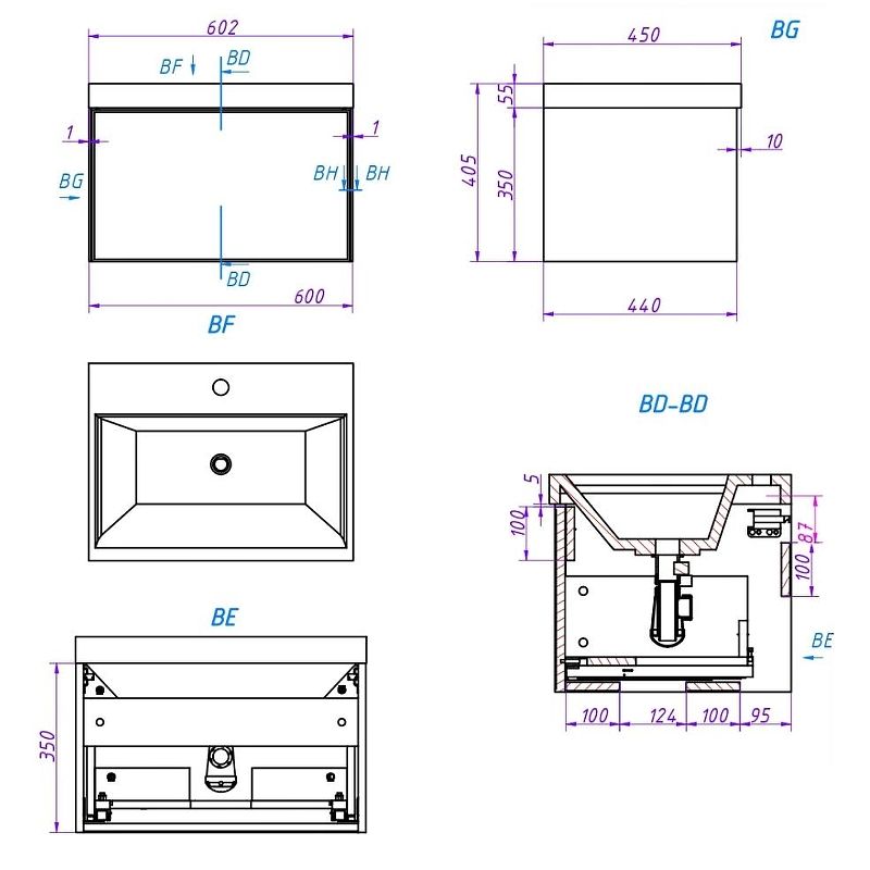 Габариты корпуса тумбы (ШхВхГ): 600х350х440 мм.