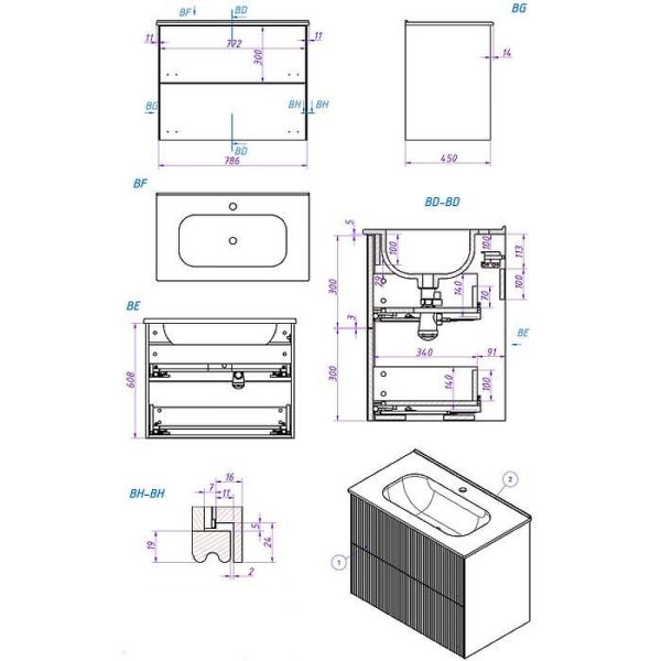 Габариты корпуса тумбы (ШхВхГ): 786х608х450 мм.