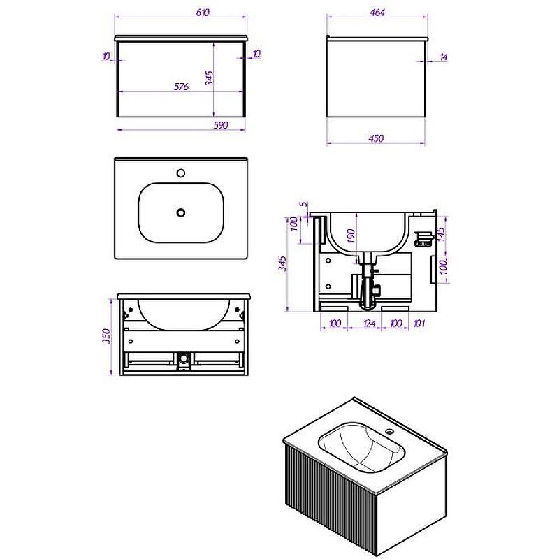 Габариты корпуса тумбы (ШхВхГ): 590х350х450 мм.