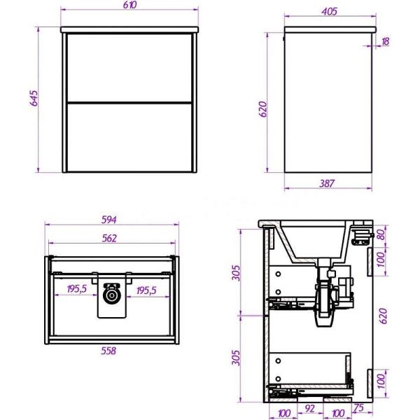Габариты корпуса тумбы (ШхВхГ): 594х620х387 мм.