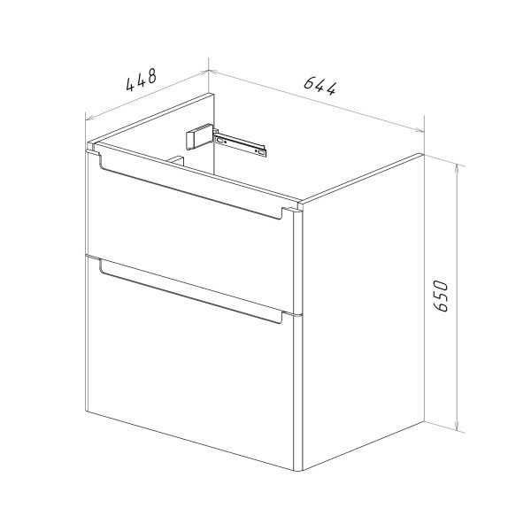 • Габариты без раковины (ШГВ): 644х448х650 мм;