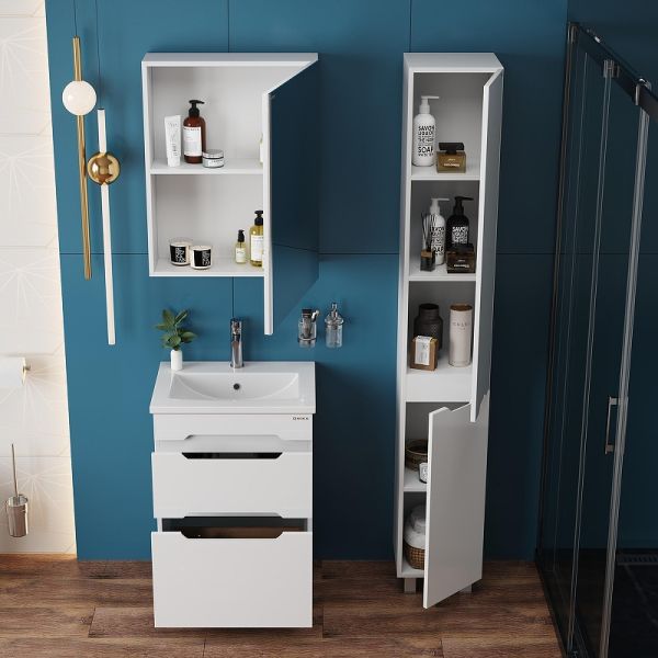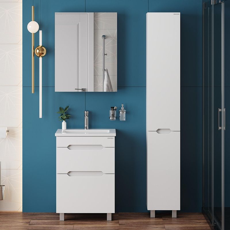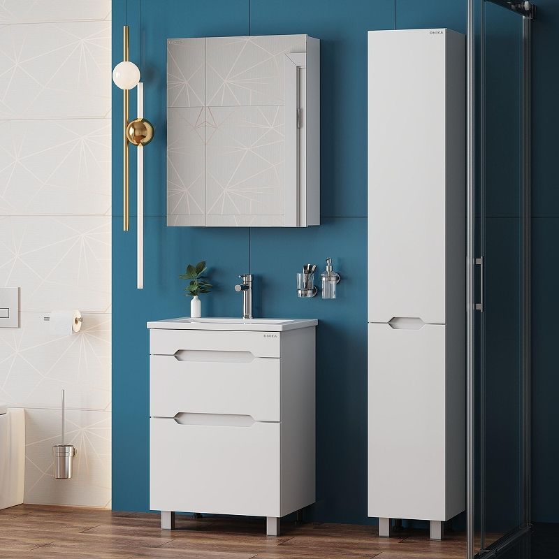 Напольная тумба для ванной комнаты Onika Айленд 60 сочетает в себе стильный минималистичный дизайн, белую глянцевую поверхность и высочайшее качество исполнения.
