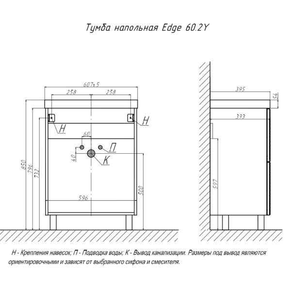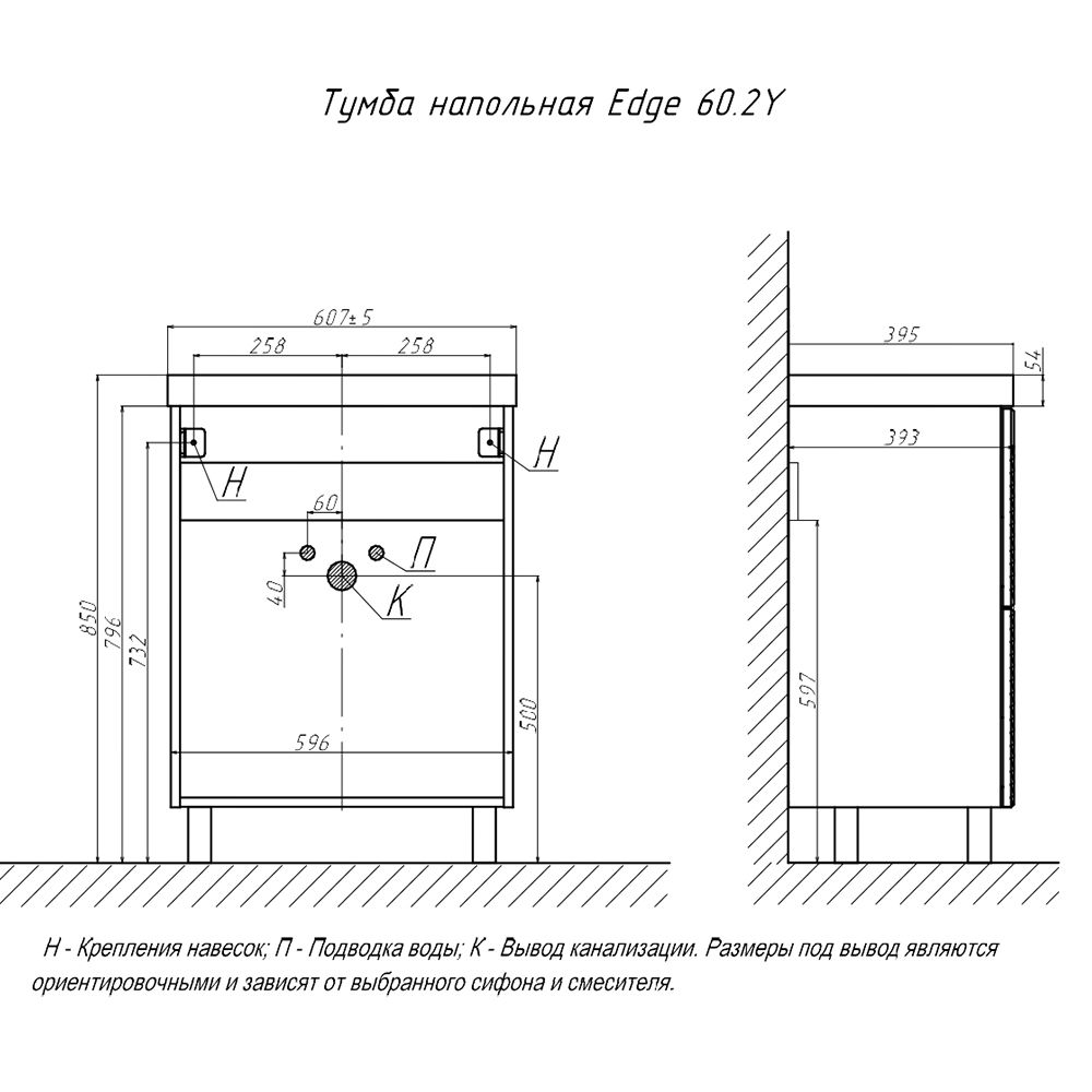 Тумба под раковину напольная Velvex Edge tn.EDG.9696.60.2Y белый глянец, 60 см купить