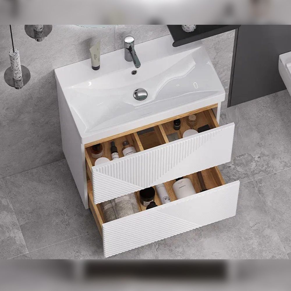 Тумба под раковину напольная Velvex Edge tn.EDG.9696.70.2Y белый глянец, 70 см: 2 выдвижных ящика с механизмом открывания push-to-open.
