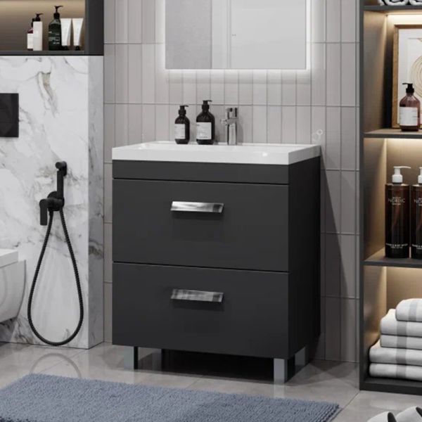 Тумба под раковину напольная Velvex Orlando tn.ORL.CLA.70.2Y графит, 70 см: 2 выдвижных ящика с механизмом плавного закрывания.