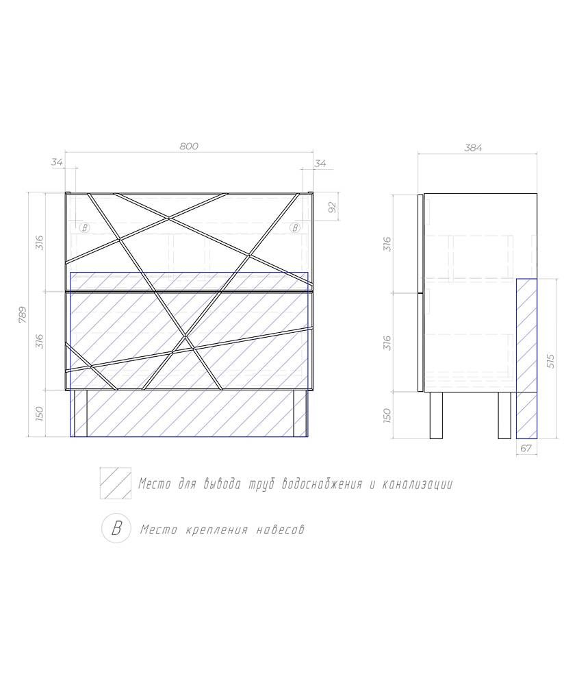 Тумба под раковину напольная Vigo Geometry tn.bsf.GEO.9696.80.2Y 80 см белый