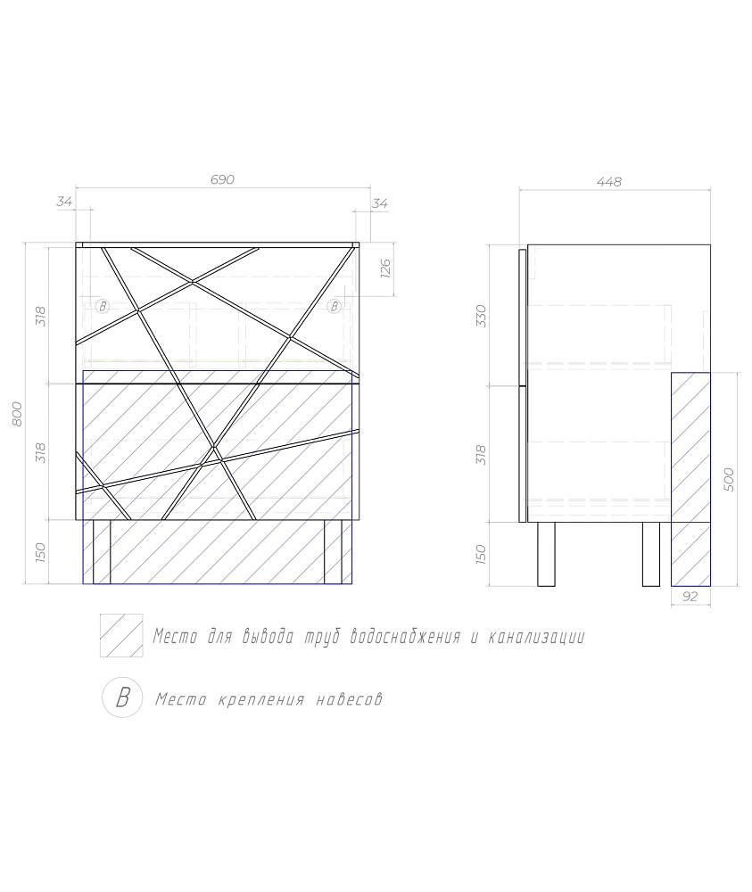 Напольная тумба. 2 ящика; опоры квадратные регулируемые.Специальный сифон Vigo в комплекте. Материл корпуса тумбы: влагостойкая ЛДСПМатериал фасадов: МДФПокрытие: пленка ПВХЯщики: направляющие полного выдвижения, механизм push-to-open