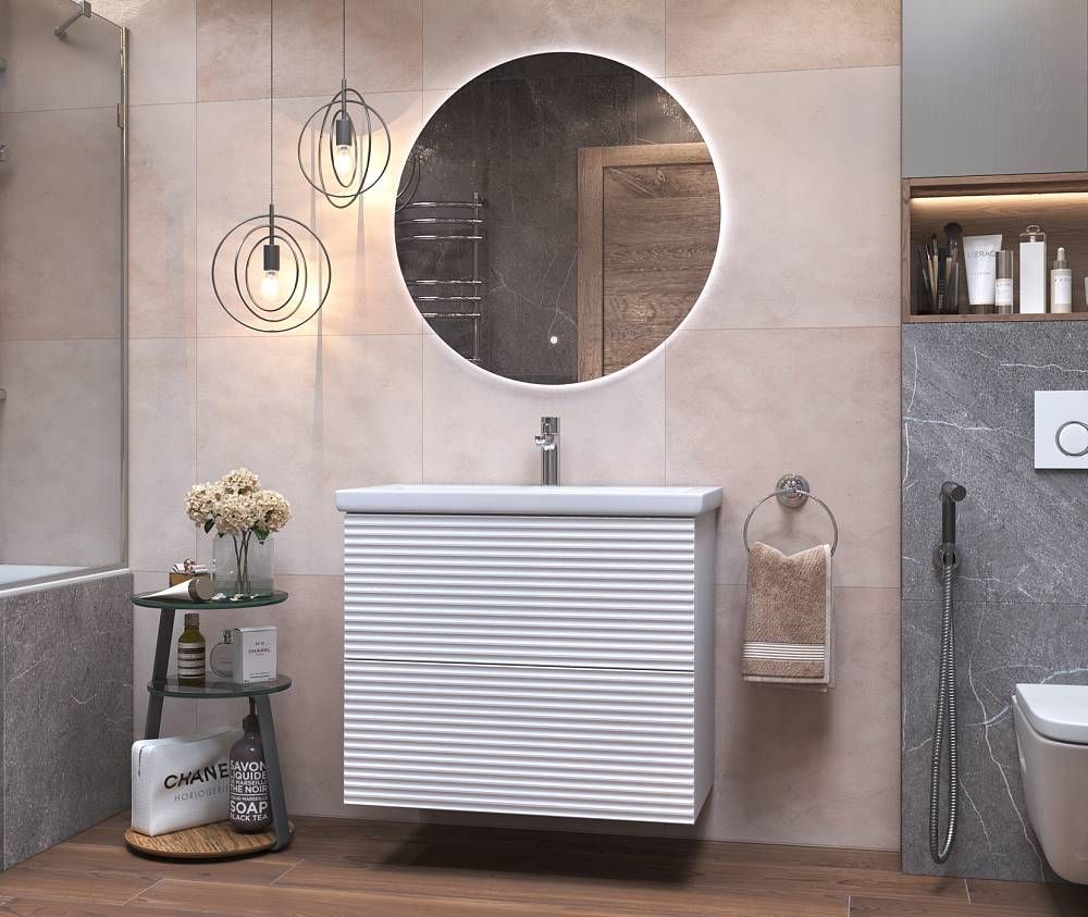 Тумбы Otti выделяются оригинальным исполнением фасадов, благодаря горизонтальной фрезеровке. Встроенный механизм push-to-open Hafele (Германия).Удобное открывание легким нажатием на фасадДва варианта размещения: напольное/подвесное