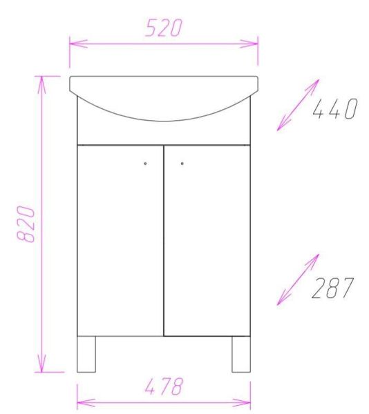 Размеры тумбы без учета раковины и ножек: 48х29х68 см.