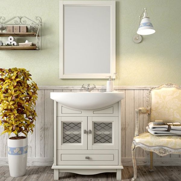 Тумба под раковину Opadiris Омега 65 00-00003138. Цвет: слоновая кость.Элегантные и лаконичные формы изделия идеально впишутся в любой интерьер в стиле прованс. Фасадные элементы украшены оригинальными ромбовидными узорами стеклянных витражей.Материал фасада/корпуса: массив бука+филенка МДФ/массив бука+ЛДСП.