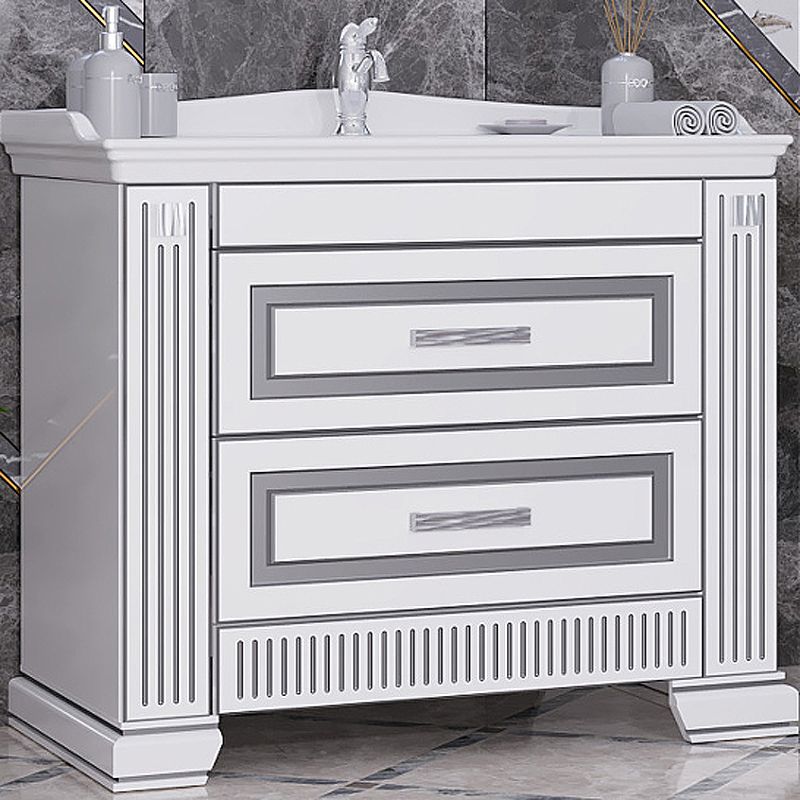 Тумба под раковину Opadiris Оникс 100 00-00003527. Станет шикарным элементом в интерьере ванной комнаты. Превосходно подходит как для классического, так и для современного стиля. Роскошный фасад выполнен с глубокой фрезеровкой с патиной, а также дополнен удобными ручками-скобами.Характеристики:Цвет: белая глянцевая с серебряной патиной.