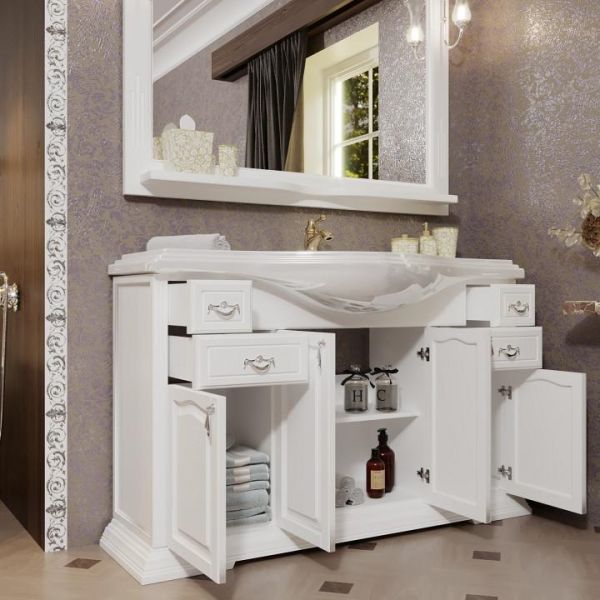 Тумба под раковину Opadiris Риспекто 120 Z0000012634 Белая матовая ручки ХромВеликолепный стиль неоклассики с лаконичными линиями сочетаются с функциональностью и удобством. Прекрасно дополнит классический интерьер ванной комнаты.Материал фасада/корпуса: массив бука/массив бука+филенка МДФ.