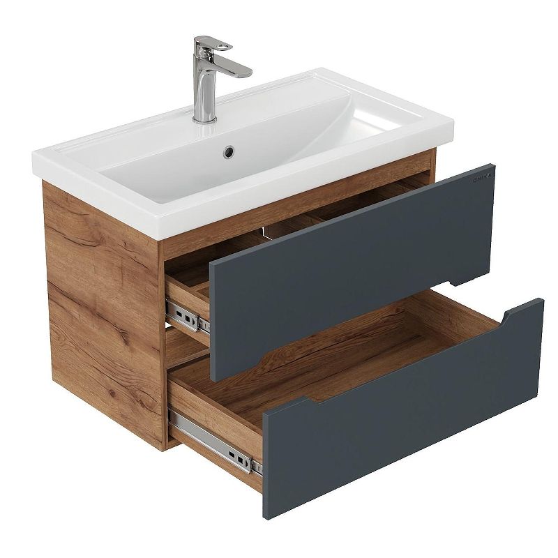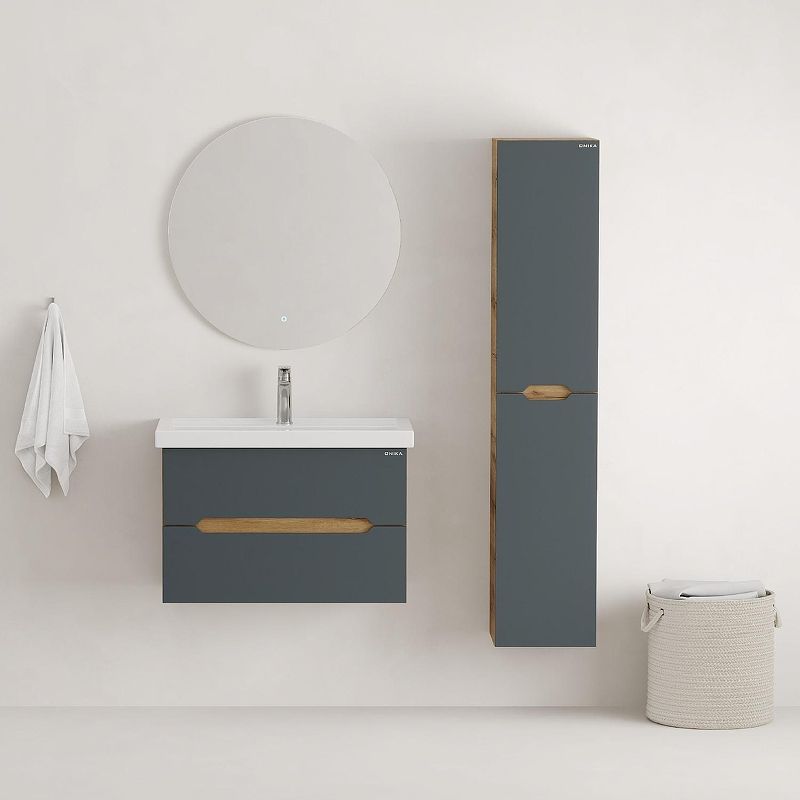 Подвесная тумба Onika Айленд 70 – это отличное решение для ванной комнаты, сочетающее стиль и практичность. Тумба впишется в любой интерьер благодаря трендовому сочетанию матового графита и золотого дуба, а также поможет эффективно организовать пространство, что особенно важно в небольших ванных комнатах.
