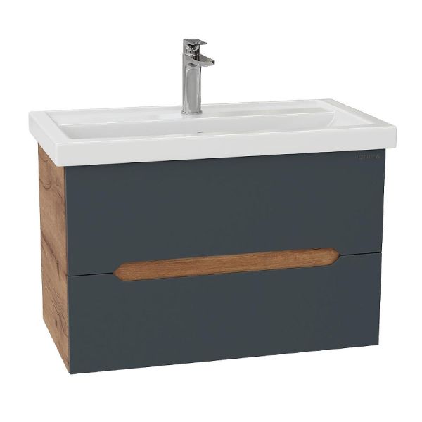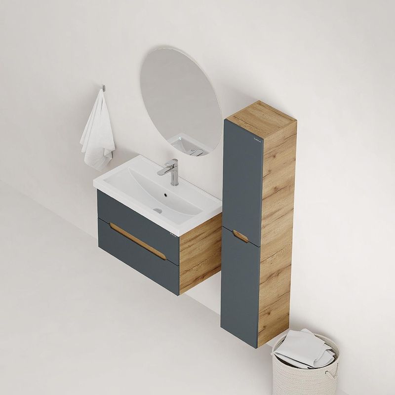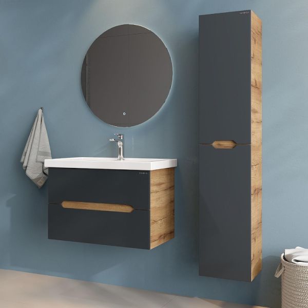 Подвесная тумба Onika Айленд 80 – это отличное решение для ванной комнаты, сочетающее стиль и практичность. Тумба впишется в любой интерьер благодаря трендовому сочетанию матового графита и золотого дуба, а также поможет эффективно организовать пространство, что особенно важно в небольших ванных комнатах.
