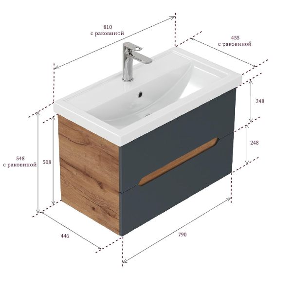 Размеры тумбы без учета раковины 79х45х51х см.