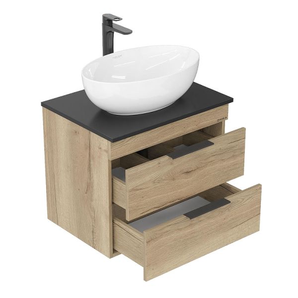 Подвесная тумба для ванной комнаты Onika Легран 60 под столешницу - это сочетание насыщенного древесного декора и благородства металла: роскошная текстура и натуральный цвет дуба дают теплоту, а матовые металлические ручки добавляют урбанизма и солидности.