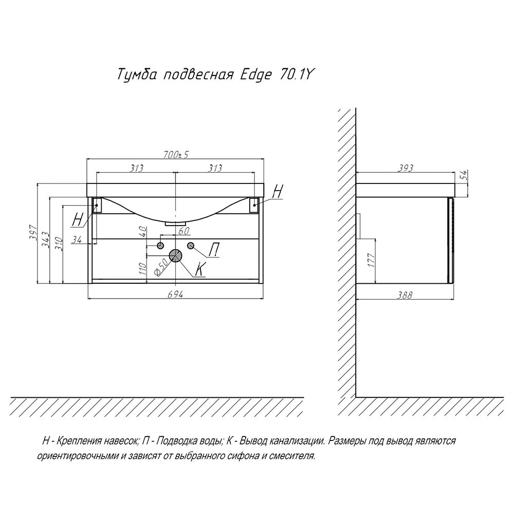 Тумба под раковину подвесная Velvex Edge tp.EDG.9696.70.1Y графит, 70 см купить