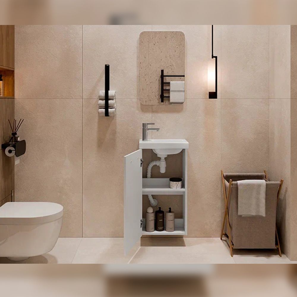 Тумба под раковину подвесная Velvex Estea tp.EST.MOD.40.1D, 40 см: 1 распашная дверца, петли с доводчиками, 1 полка из ЛДСП.