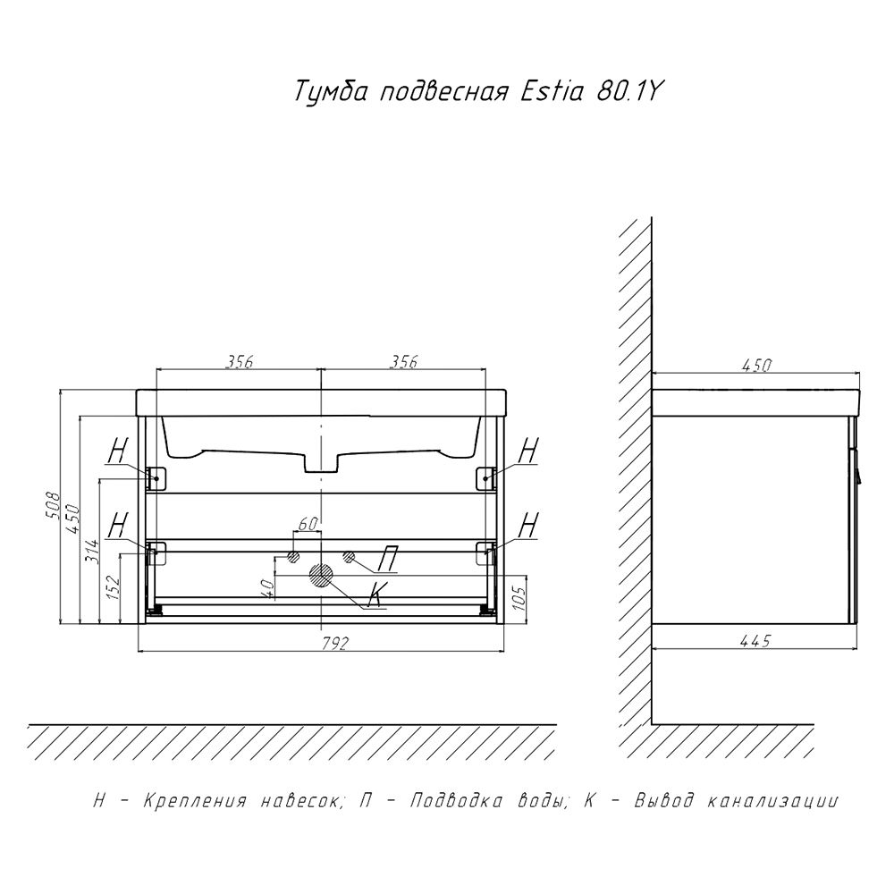 Тумба под раковину подвесная Velvex Estea tp.EST.MOD.80.1Y, 80 см