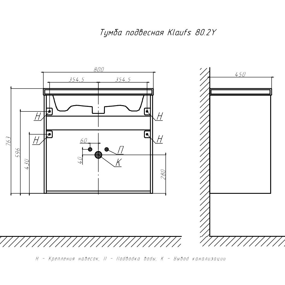 Тумба под раковину подвесная Velvex Klaufs tp.KLA.COM.80.2Y, 80 см