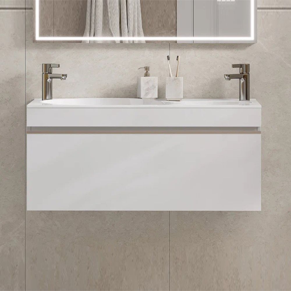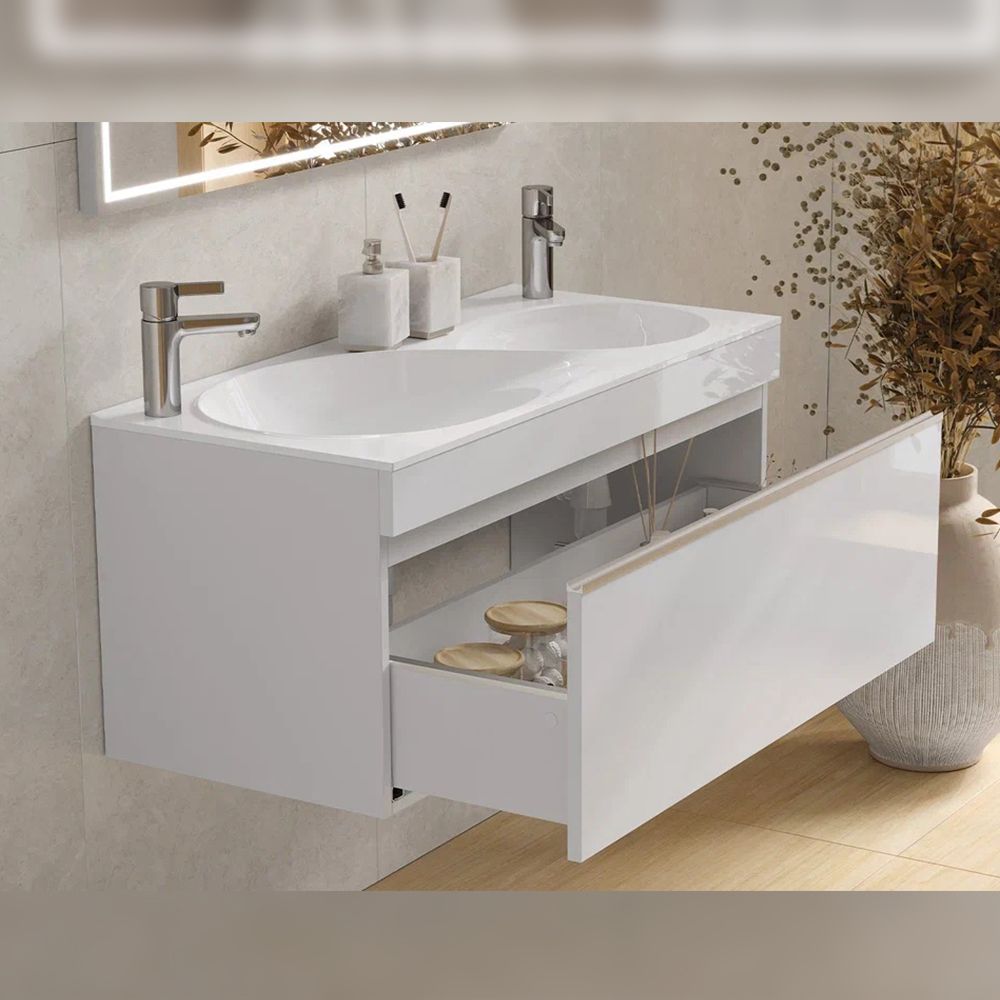 Тумба под раковину подвесная Velvex Otto tp.OTO.OTT.100.1Y белый глянец, 100 см: 1 выдвижной ящик.